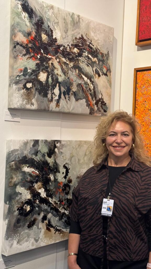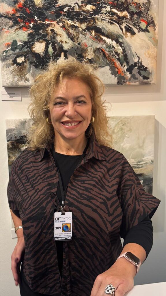ARTEXPO New York 2025 a réuni des artistes du monde entier aux techniques variées. Les œuvres de Marina se distinguent par leur originalité et la force de leur impact, grâce à la texture et aux touches de peinture asphaltée.